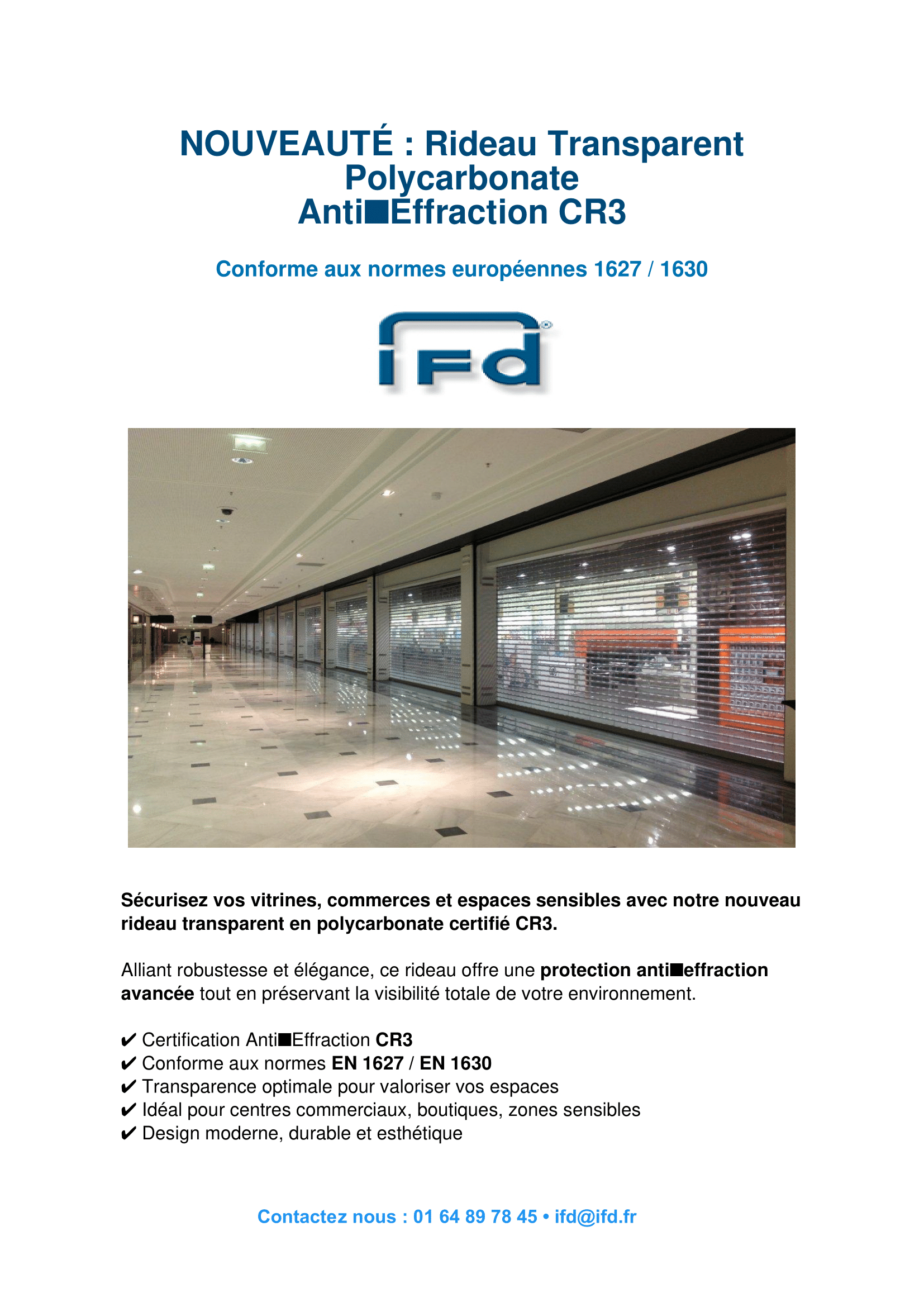 IFD propose une large de gamme de rideaux de sécurité pour apporter la réponse la plus adaptée à votre commerce, à votre magasin ou à votre bâtiment. En acier, en aluminium, en inox, en polycarbonate ou transparents, nos rideaux de sécurité allient toujours l’esthétique et la sécurité.